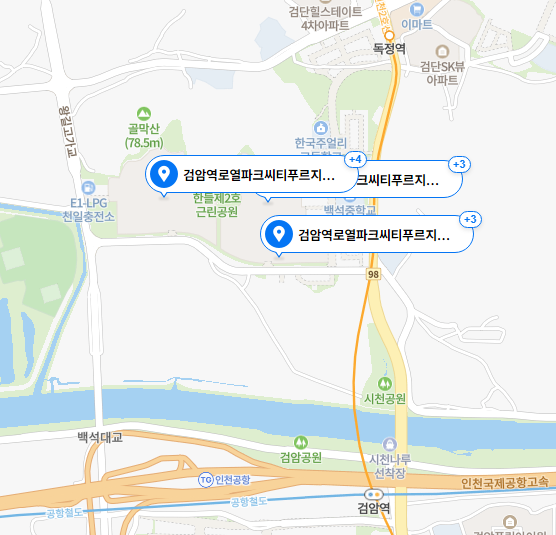그럼 우선 첫 번째로 인천 서구 검단 신도시에 인접해 있고 인천 2호선 전철역인 검암역과 독정역 사이에