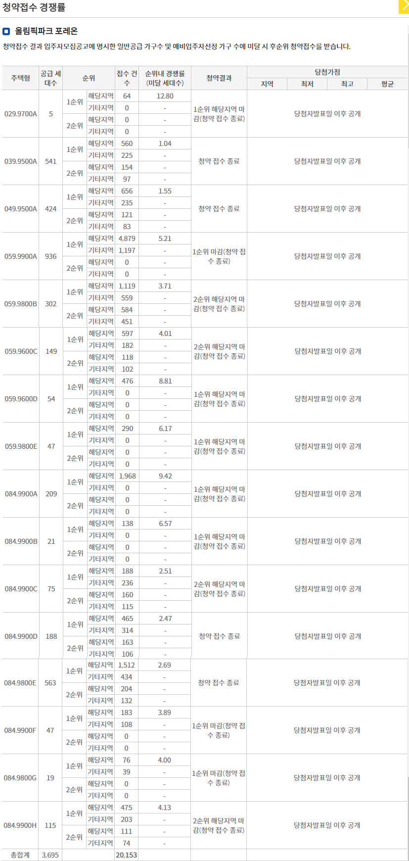 그런데 가장 인기 있던 단지, 단국이래 가장 큰 재건축이라는 둔촌주공이 이보다도 못하게 나오니 말들이 많이