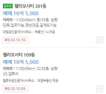 아래, 네이버 부동산 매물만 보시더라도 33평 기준 매물이 16억 5만 원에 나와있습니다